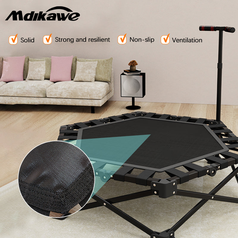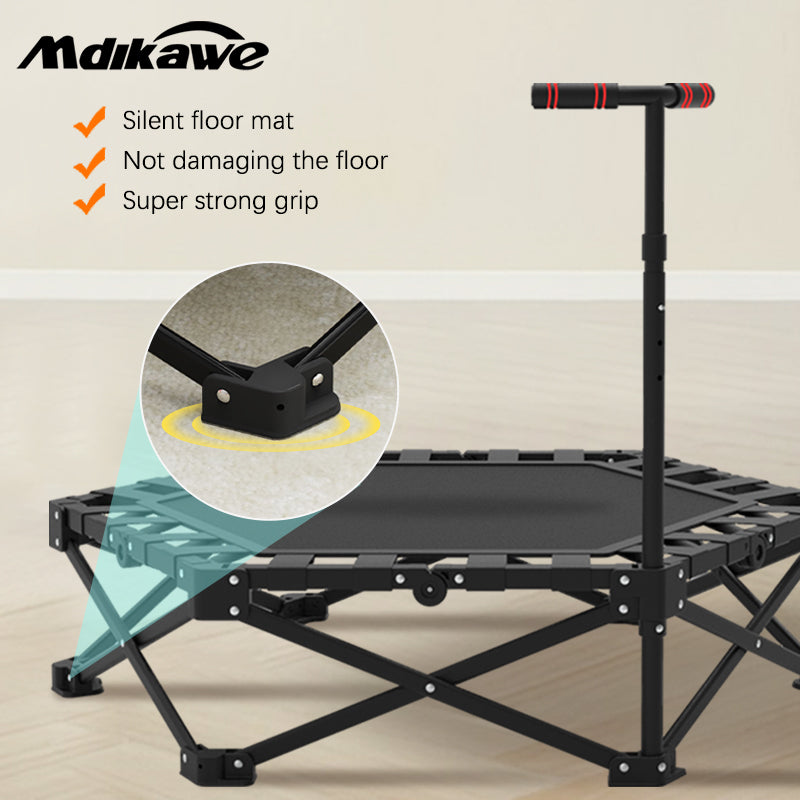 Mdikawe Foldable Fitness Rebounder Trampoline- Premium Indoor Workout Equipment for Home Gym with Adjustable Height Handle- Saving and Portable Exercise Solution